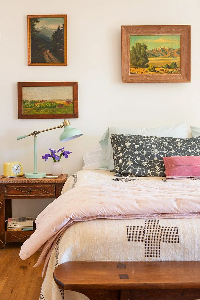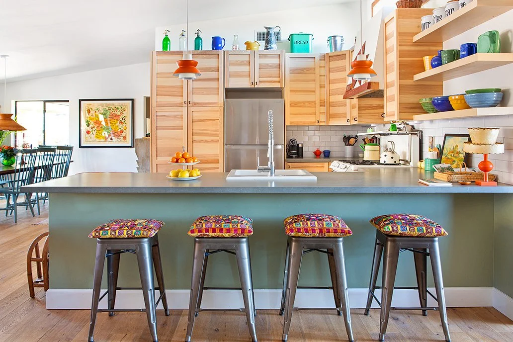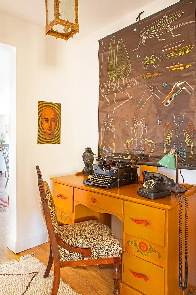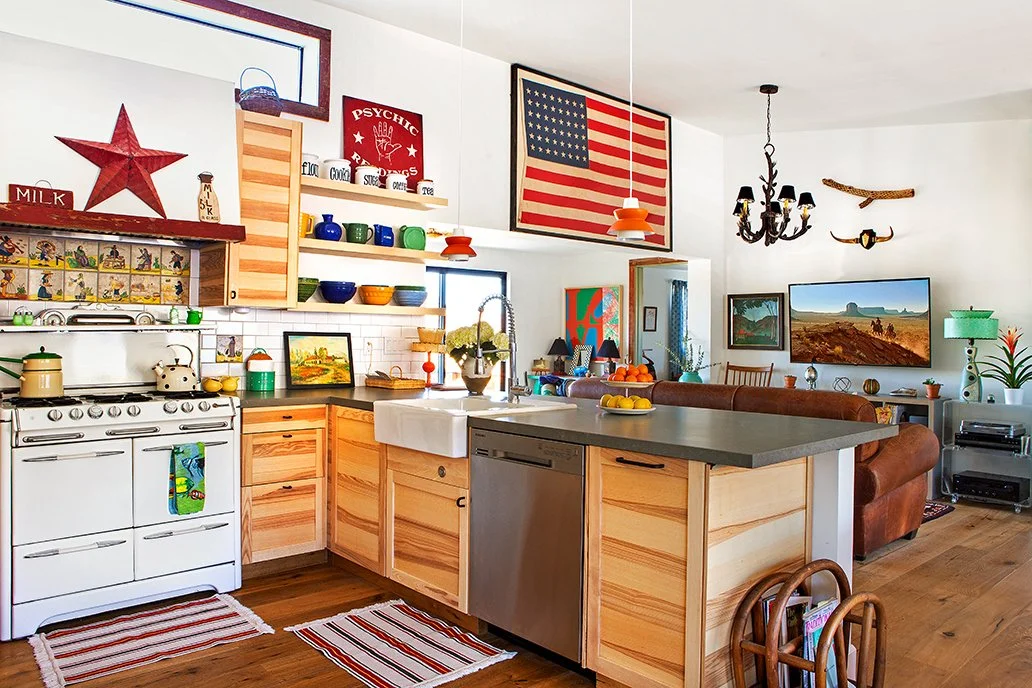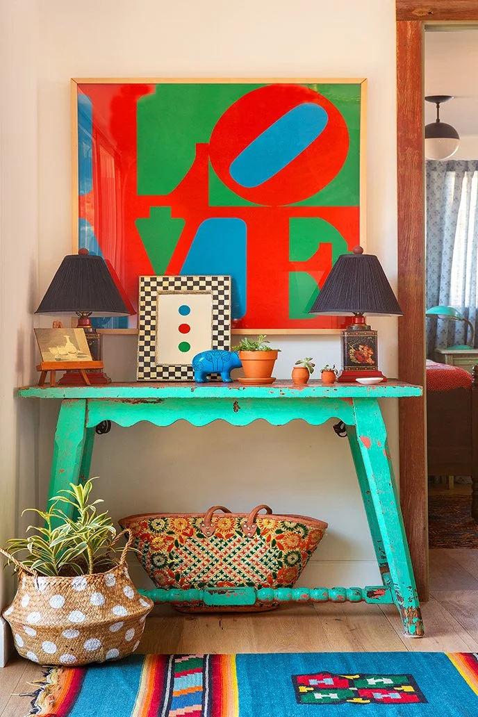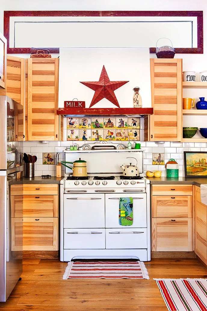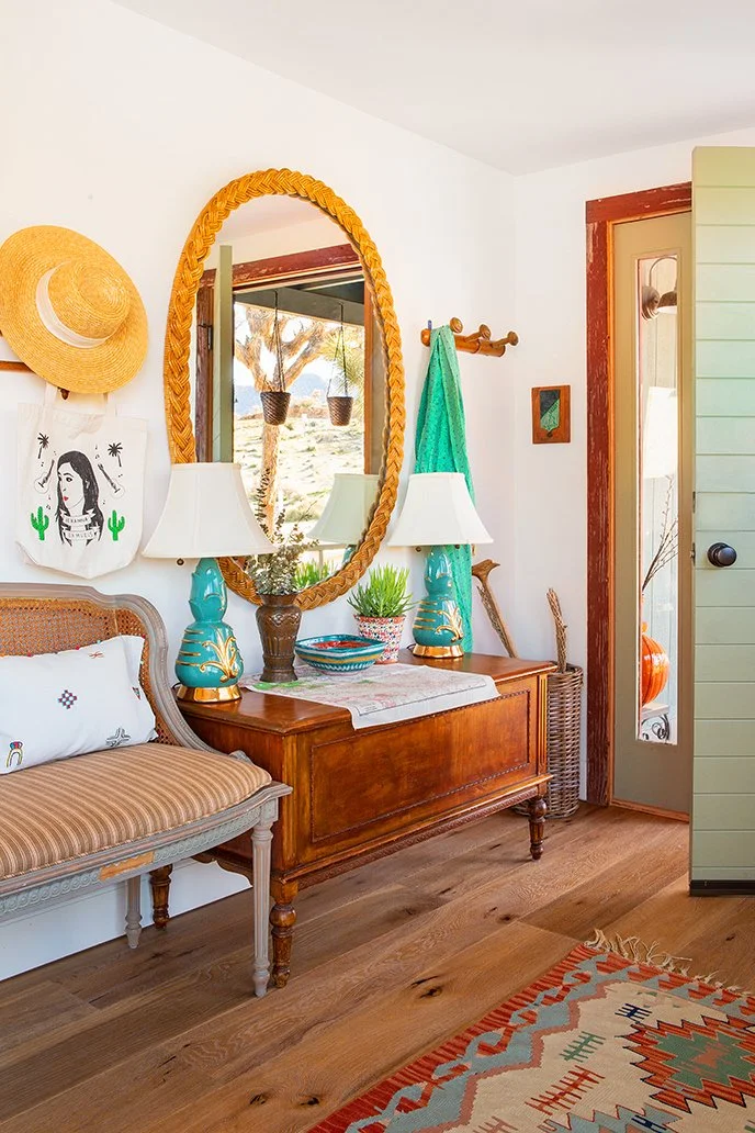 The decor was completed with an open kitchen with a vintage O’keefe and Merritt stove and IKEA cabinets. The new bathroom features an orange free standing claw foot tub and a large walk-in shower with Moroccan style encaustic tile. The house was sold in 2025 after a long run as a five star Airbnb property.