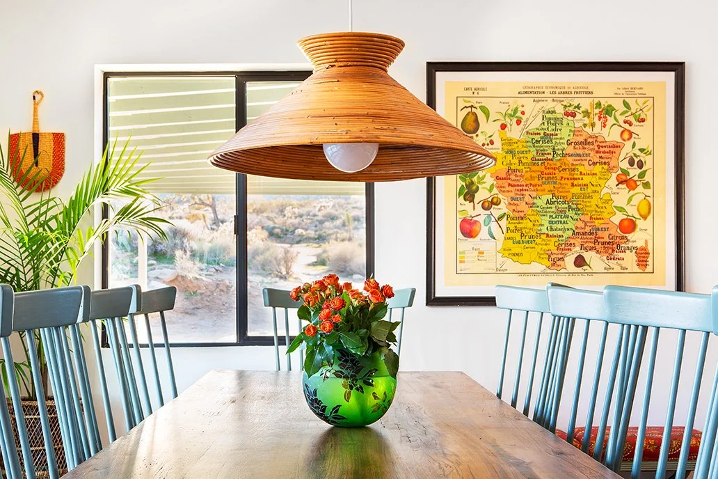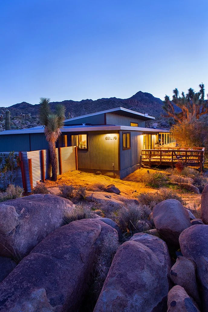We bought this 1960’s desert post and beam house on two and a half acres in 2017 and took it down to the studs. With the help of architect Duane Smith of Hundred Mile House, we transformed a two bedroom one bathroom cabin into a fully redesigned three bedroom two bathroom, with all new hardwood oak flooring, windows and doors and a wrap-around patio with a spa to show off the amazing views of on-site boulders, Saguaros, and Joshua Trees.